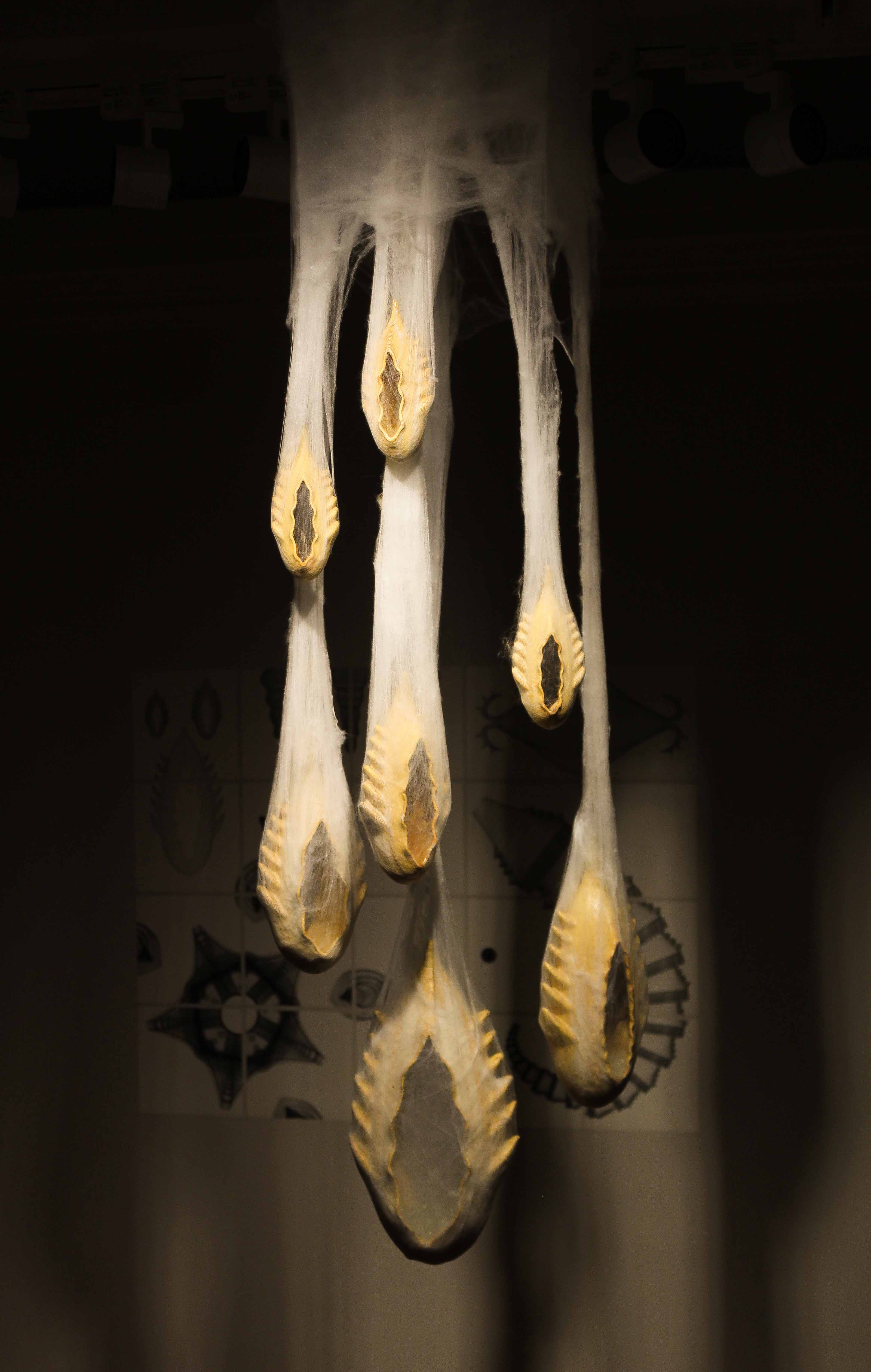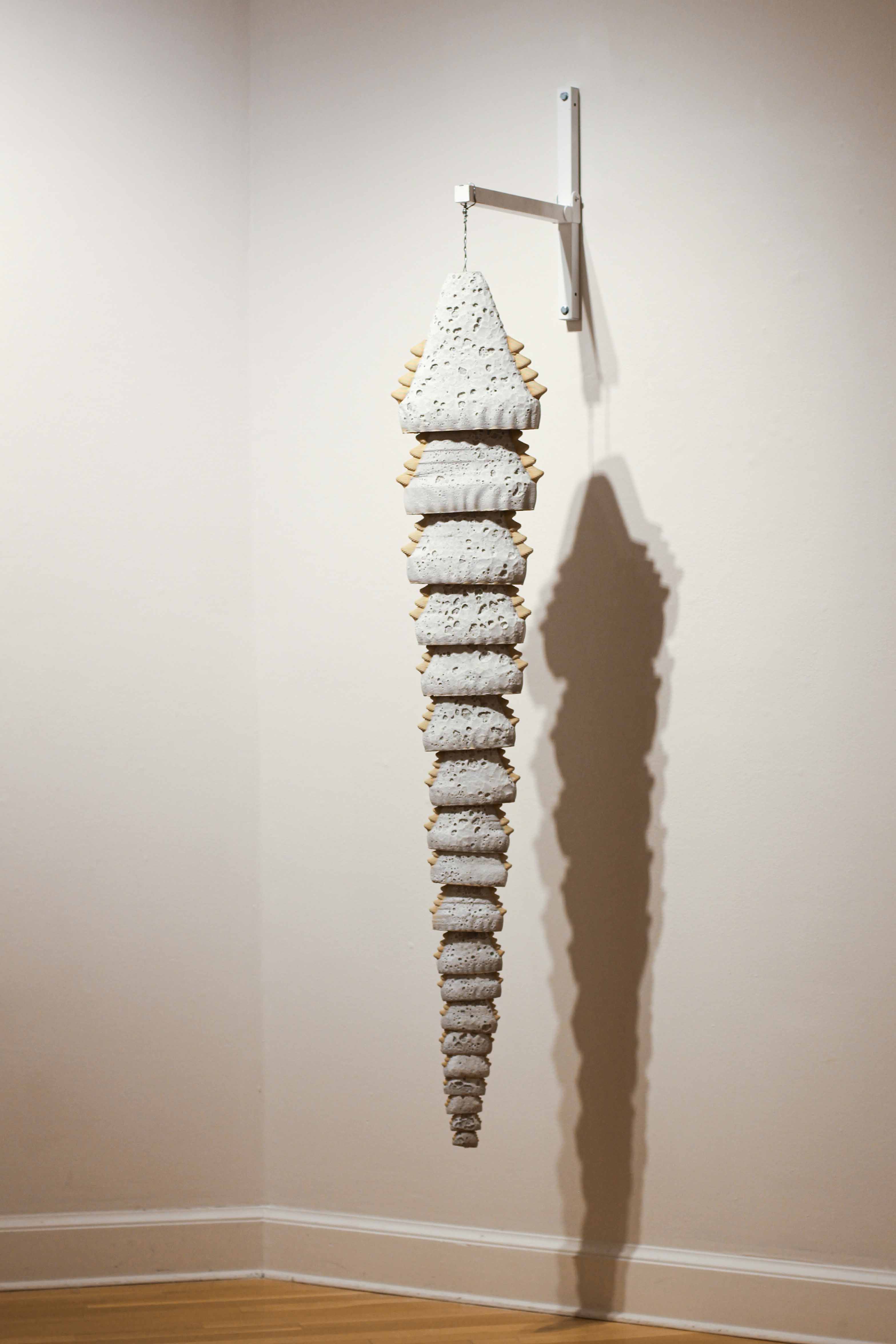 The embryonic midline structure, the Notochord, is responsible for sending mechanical and signaling cues to the developing embryo, prompting the development of the vertebrae in vertebrates. The works are composed of segments: evenly proportioned and decreasing in scale; similar to the structure of a spine, and mirroring the visual scales of compounding growth.