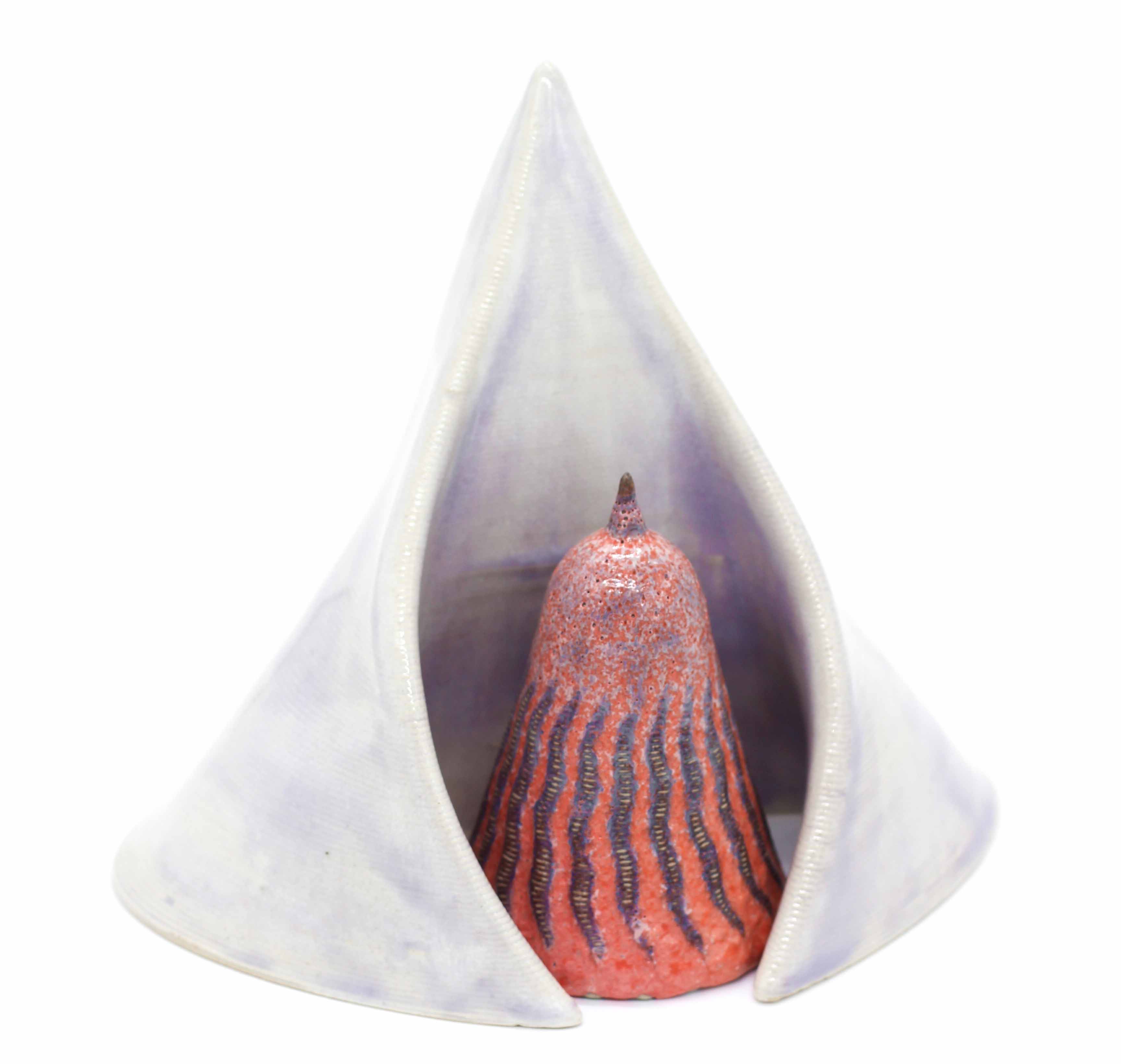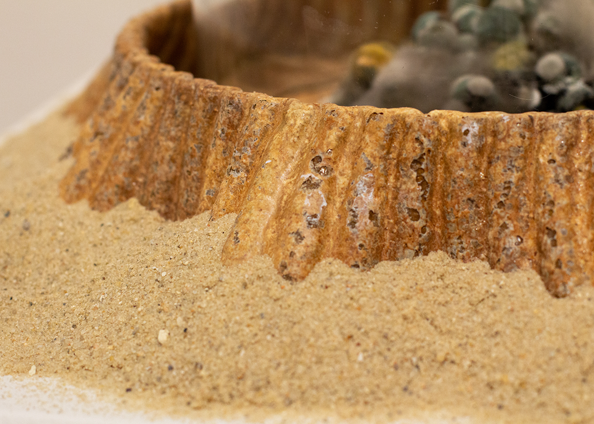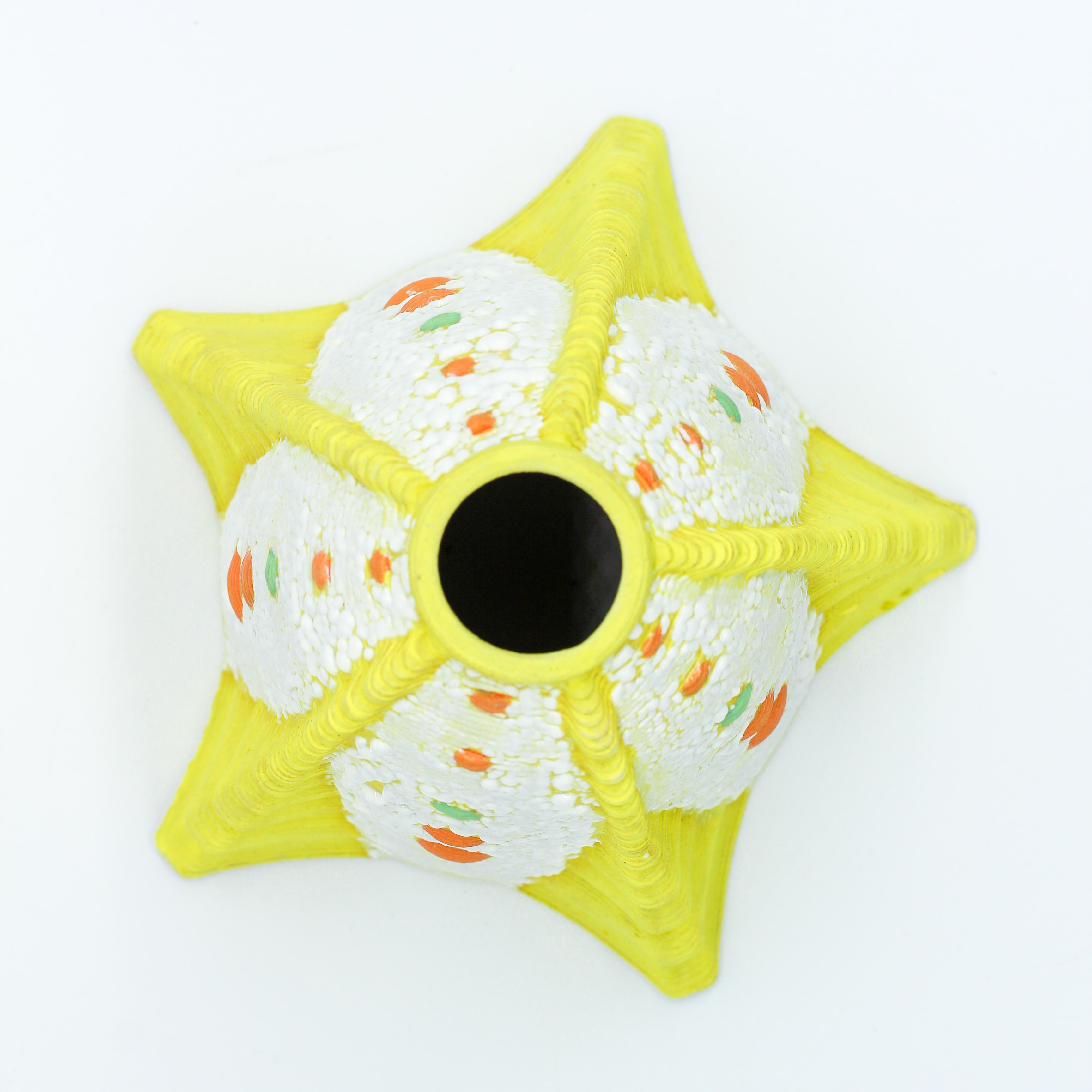 Using 3D modeling design software, such as Fusion 360 and Grasshopper, I employ a clay printer to create sculptural works that hybridize the forms of a smattering of biological structures, such as antennae, fins, webs, etc. I call upon the similarities in the morphologies of different species in the design of my models. The coral mush- room resembles a branching sea coral; a sea urchin mimics an Astrophytum asterias cactus.
